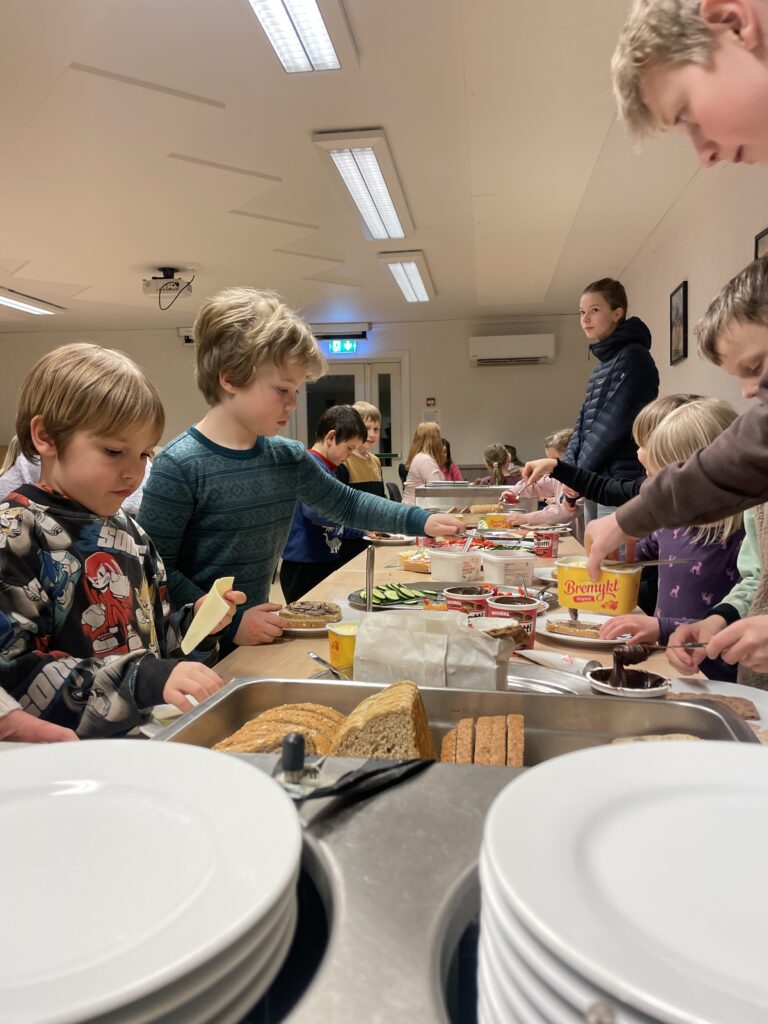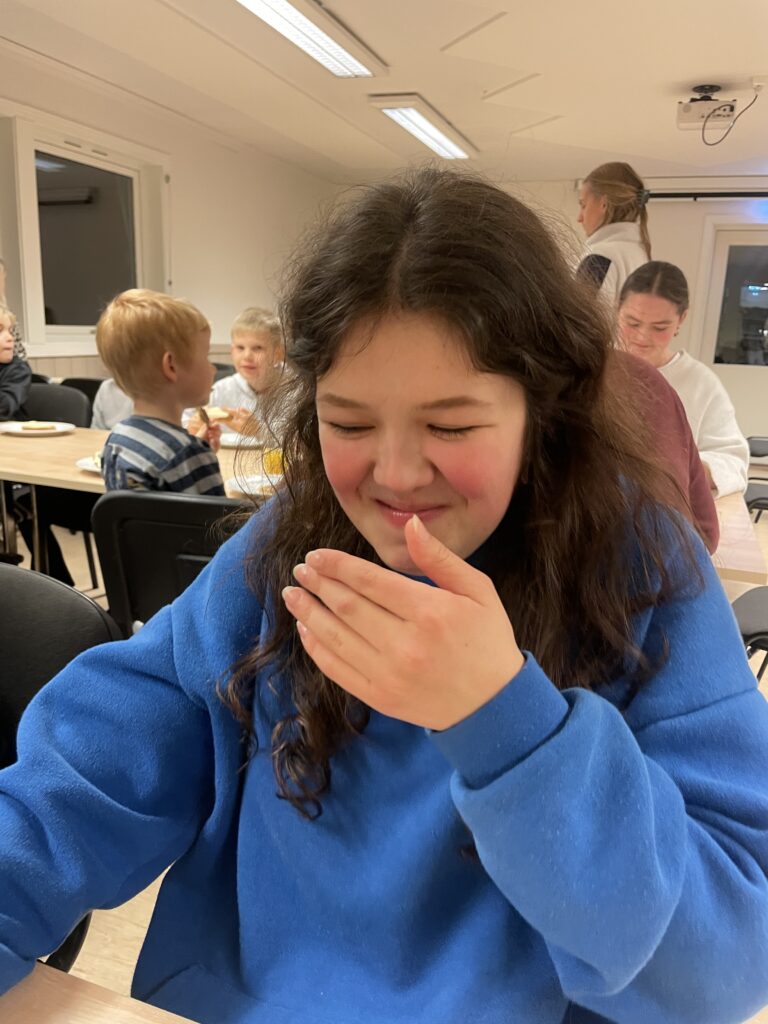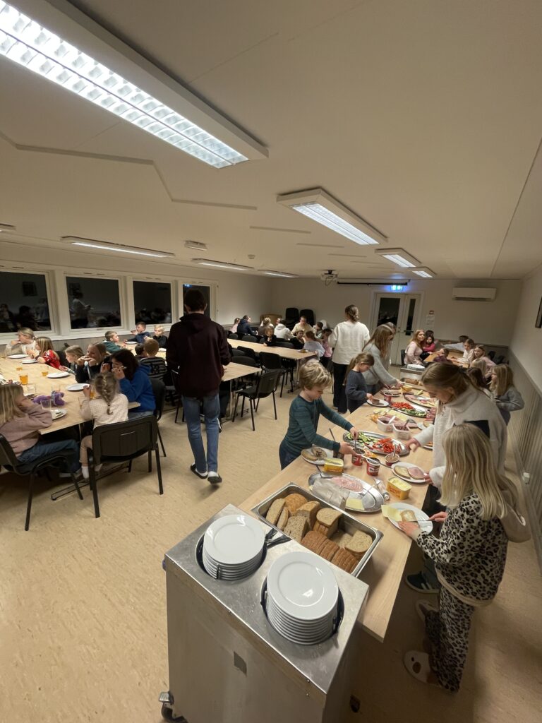 Ut på formiddagen lørdag var det deilig for alle og enhver å komme seg ut litt. Så sporleken ble avholdt ute med forskjellige oppgaver ungene måtte bryne seg på. Og lagånden og konkurranseinstinktet hos ungene var tilstede.