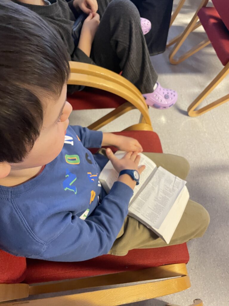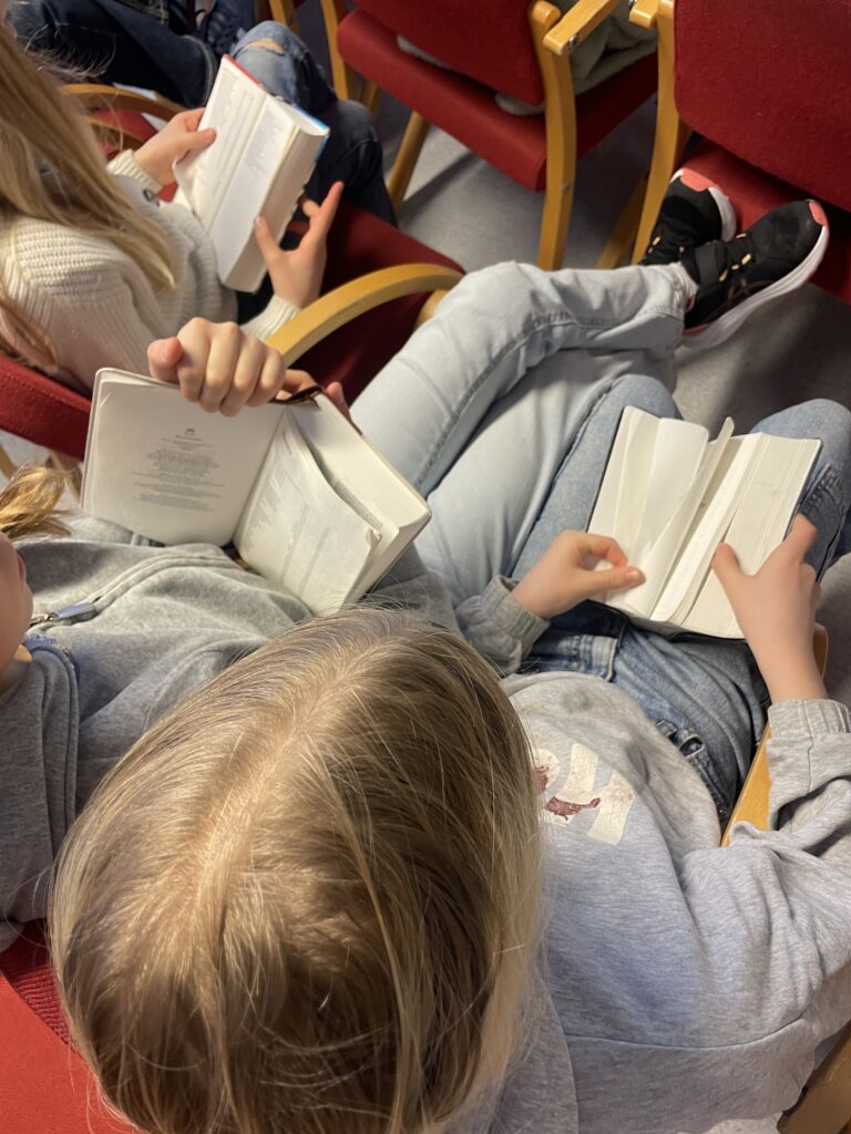 Tema for helgen var Graven er tom. Det var tema på bibelsamlingene, barna fikk også en liten innføring i hvordan de skulle slå opp i bibelen.