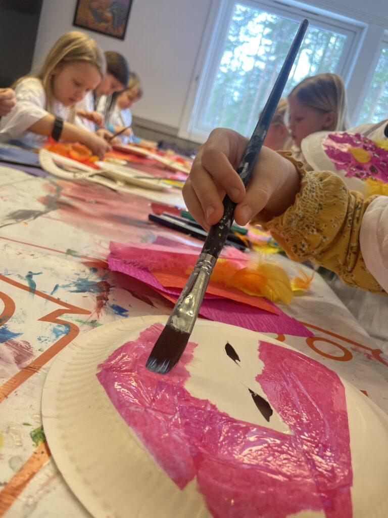 En påskeleir må jo selvfølgelig også ha påskeverksted, så tradisjonens tro var det selvfølgelig karsesåing. I tillegg var det legobygging, lasertag og de fikk mulighet til å lage sin egen ansiktsmaske. Det var mye kreativitet ute å gikk.