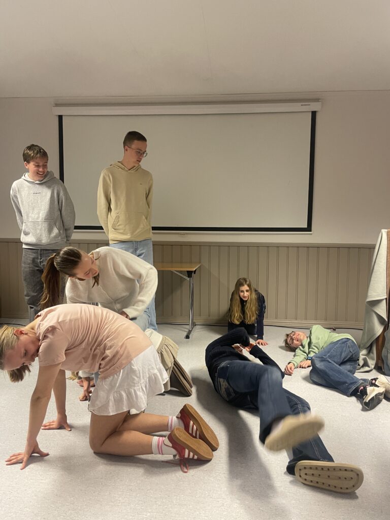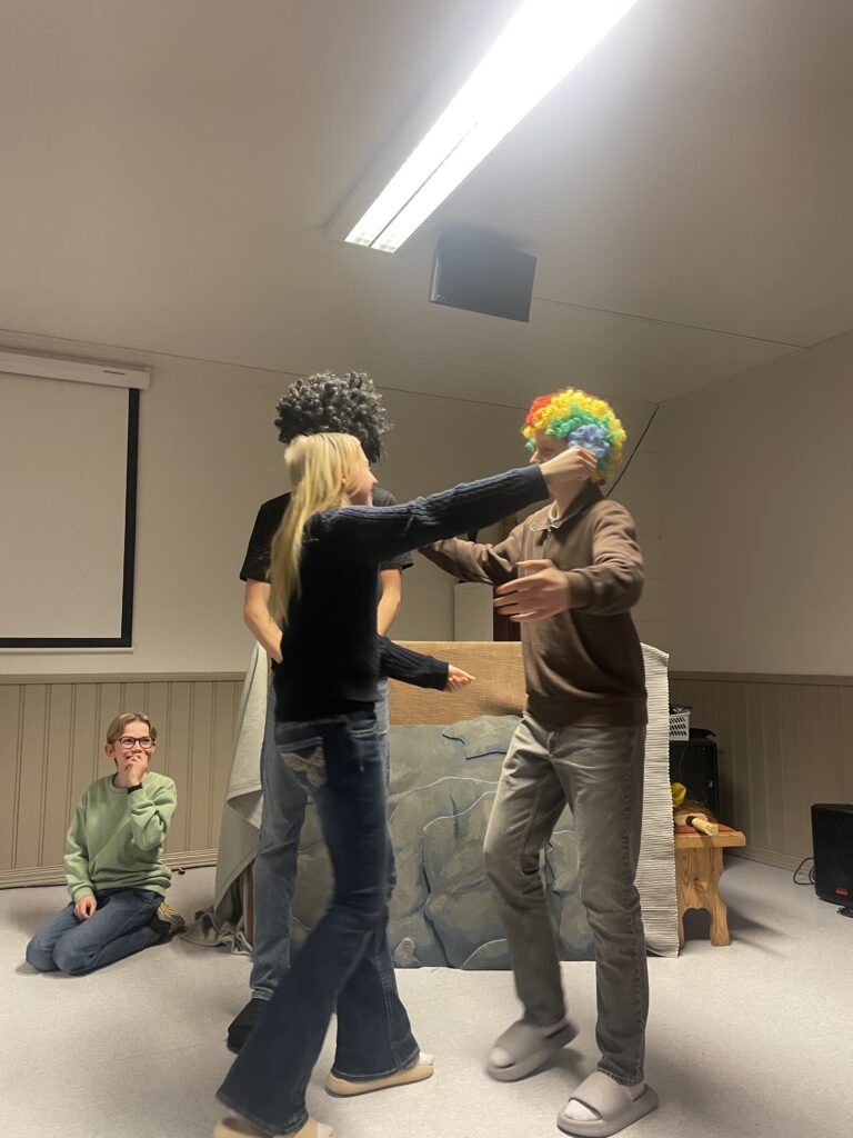 På kvelden var det underholdningskveld, med selfølgelig blant annet henteleken og quiz på programmet. Også lederne bidro med skuespill til god latter fra deltagerne.
