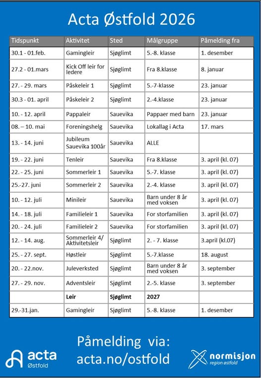 Leirkalender for 2026